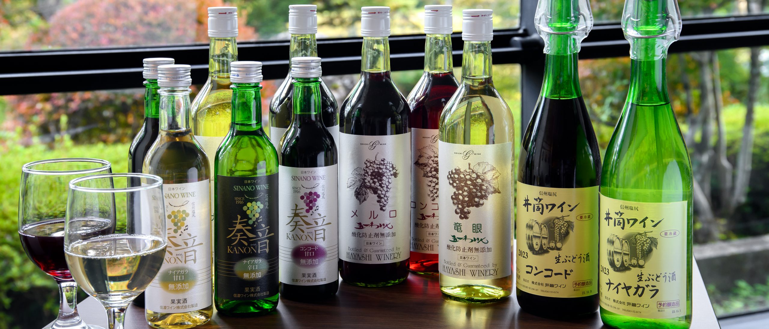 Q 桔梗ヶ原産無添加ワイン(信州ワイン) フルボトル(赤・白・ロゼ)…3,500円~