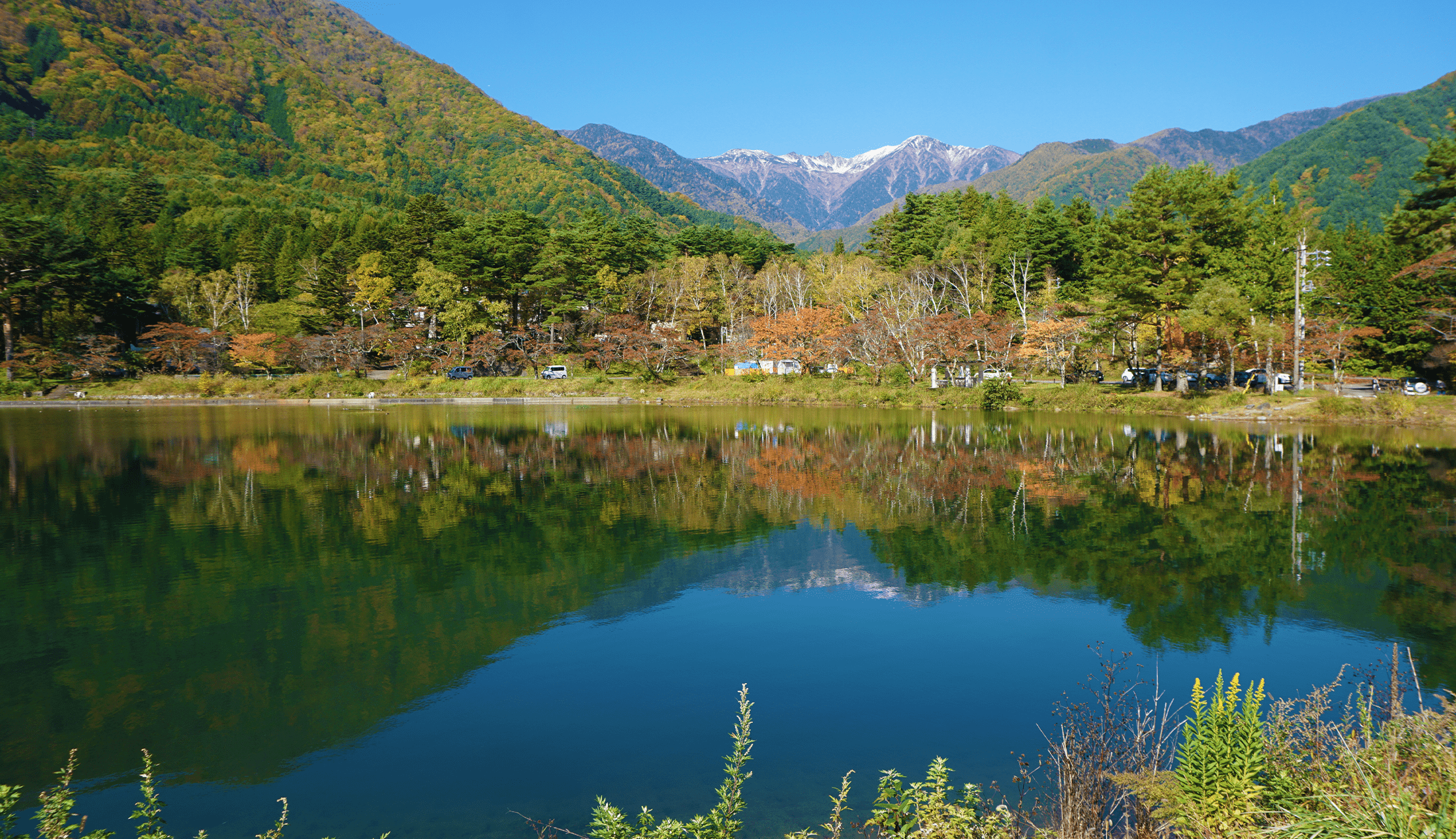 大沼湖は静かな湖のため、背後にそびえる中央アルプスが湖面に映り、まるで絵画のような情景に心癒されます。