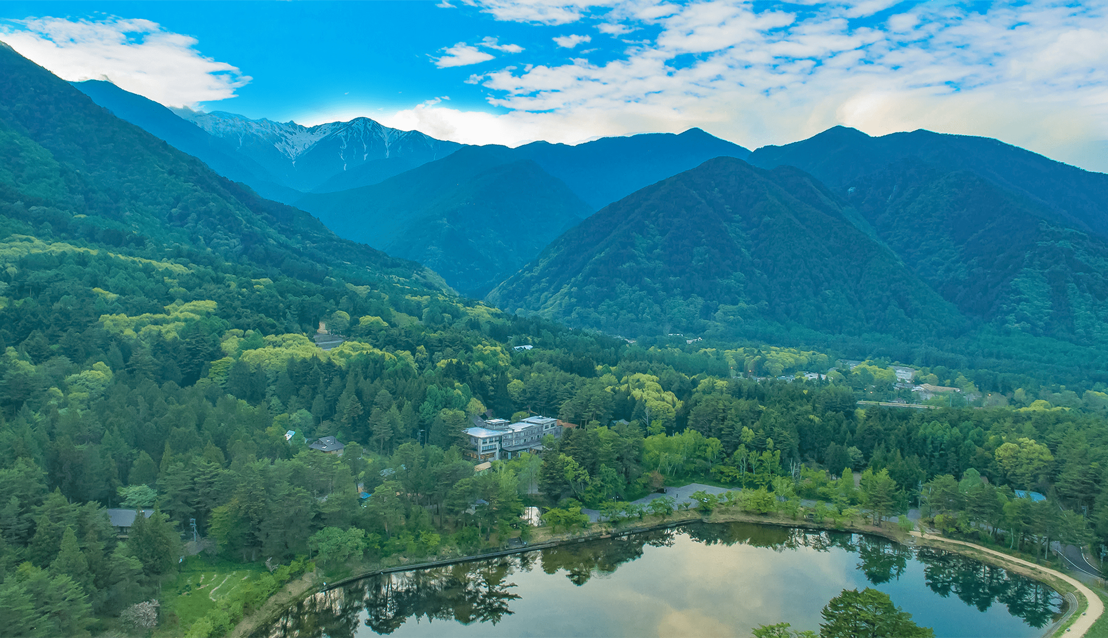 中央アルプスの豊かな自然に抱かれた大沼湖。静かな湖面に映る中央アルプスや朝焼けなど、大自然が織りなす四季折々の景色の中で心と体をリセットしませんか?