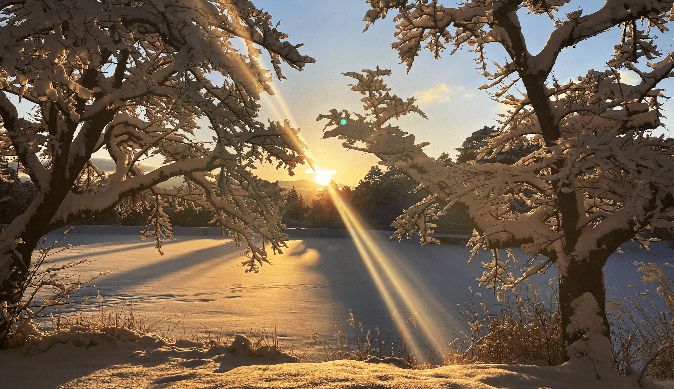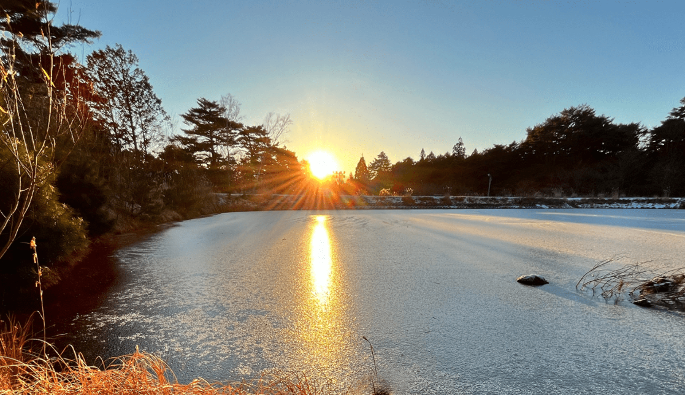 冬になると湖畔の木々や遊歩道は雪で真っ白に。早朝には木々や草に霧氷(むひょう)や霜が付き、氷の芸術が広がります。